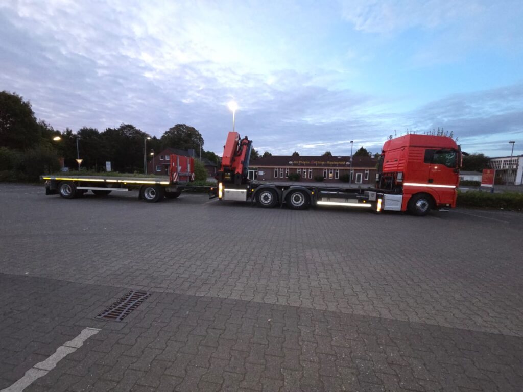 Mit integrierter Ladefläche und Anhänger für 20-Fuß-Container meistern wir jede Herausforderung. Maschinen, Bauteile oder Spezialfracht – Ihre Last ist bei uns in sicheren Händen. Termintreu, sicher und professionell.