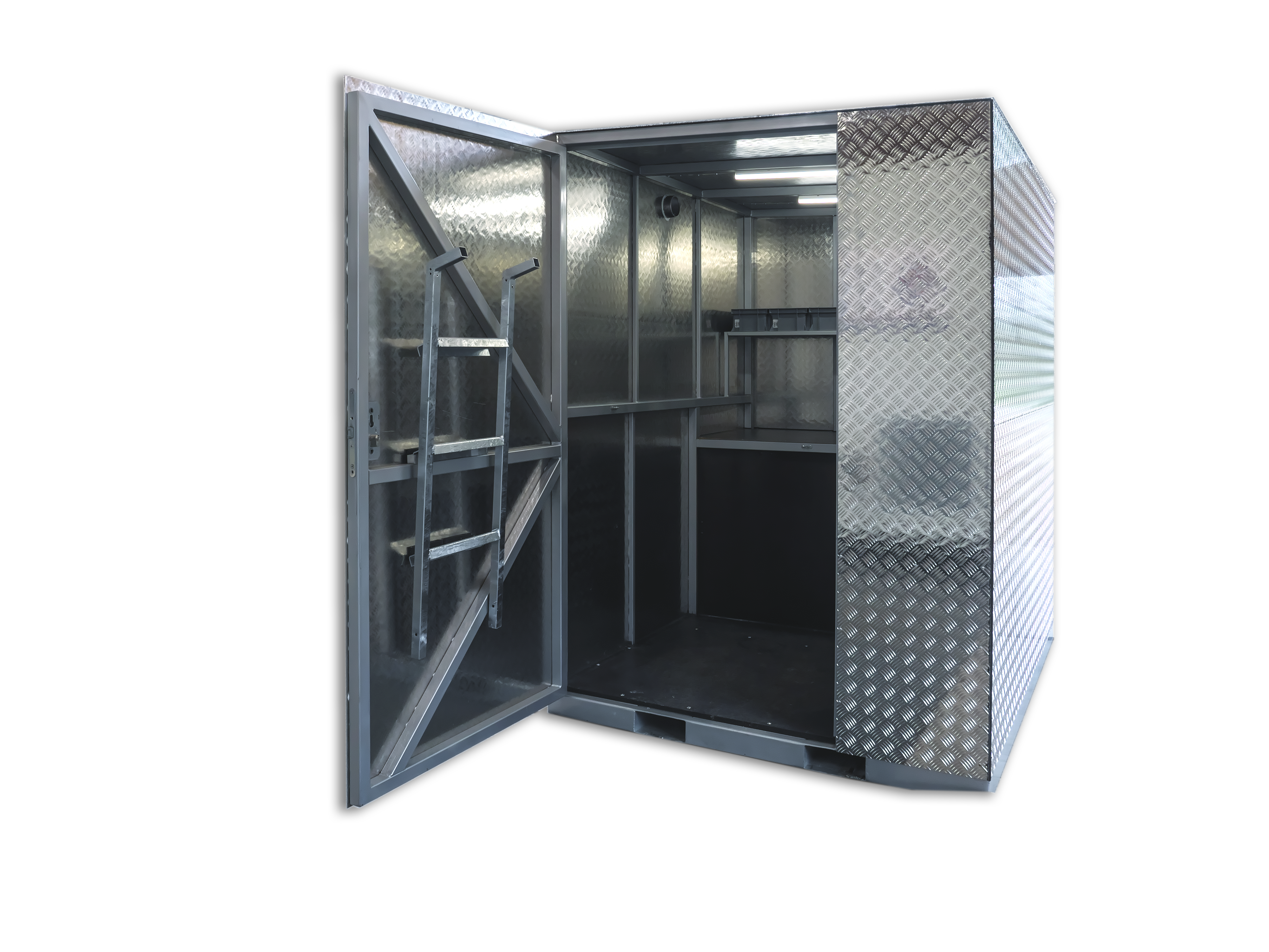 Unser Werkzeugmodul ist kompakt und vielseitig einsetzbar. Ob mobil auf einem Pritschenwagen, als Baustellentresor oder Gartenwerkstatt ist viel Stauraum auf kleinster Fläche geboten.