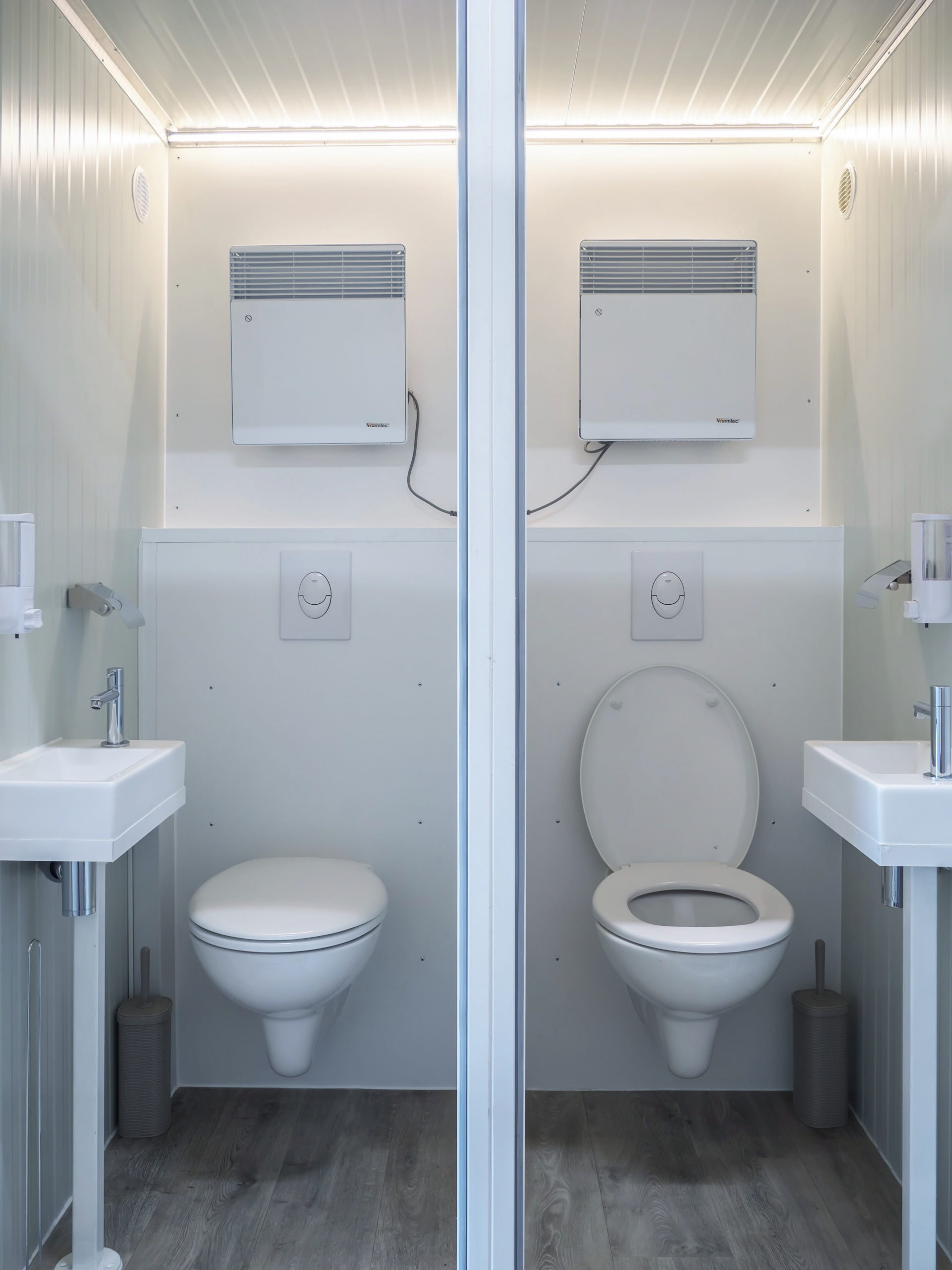 Unser kleines WC Modul 2 + 1 bietet größten Komfort auf kleinstem Raum und ist für Firmenveranstltung sowie Gartenpartys perfekt geeignet. Ob im Damen- oder Herrenabteil, die Ausstattung lässt keine Wünsche offen. Neben dem Wand-WC und Waschbecken findet sogar ein zusätzliches Urinal Platz.